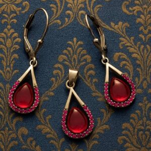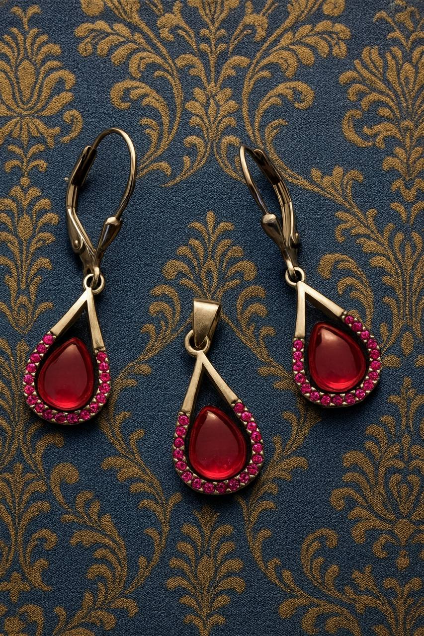 Antique Ruby Teardrop Set – Silver Earrings & Pendant Ensemble